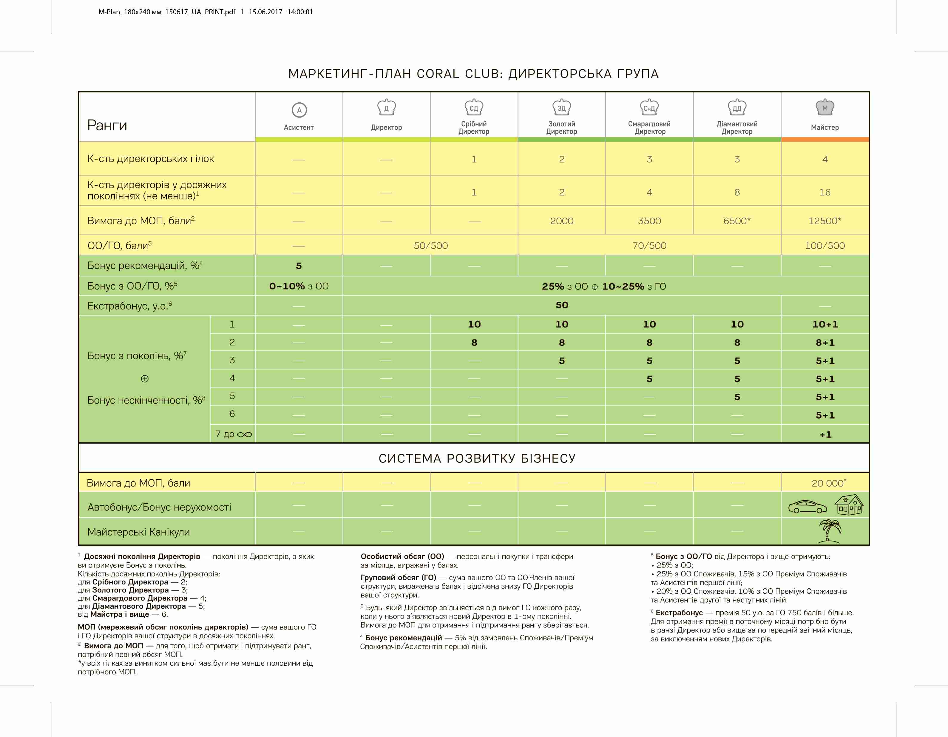 Маркетинг-план 2017: екстрабонус для директорської групи і збільшення сумарних виплат в мережу