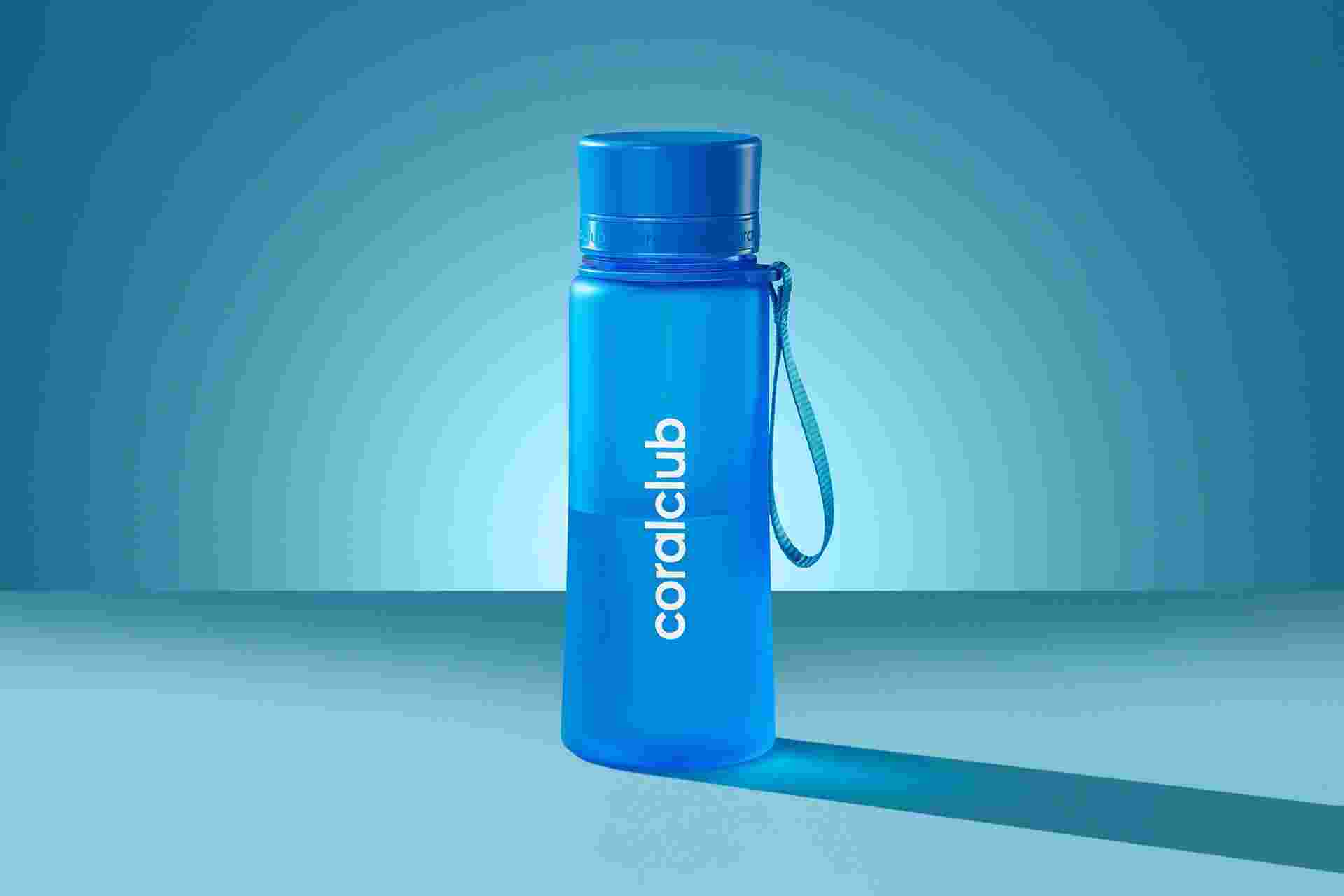 Міцна, екологічна та легка пляшка Coral Club чудово підійде для поїздок, прогулянок або занять спортом.
